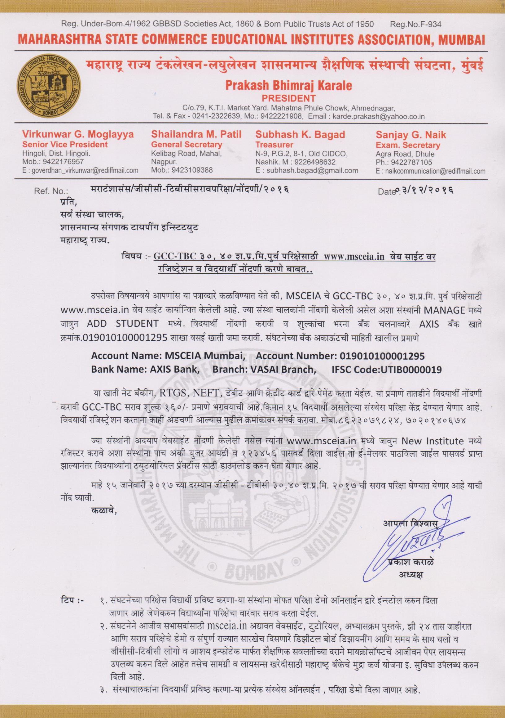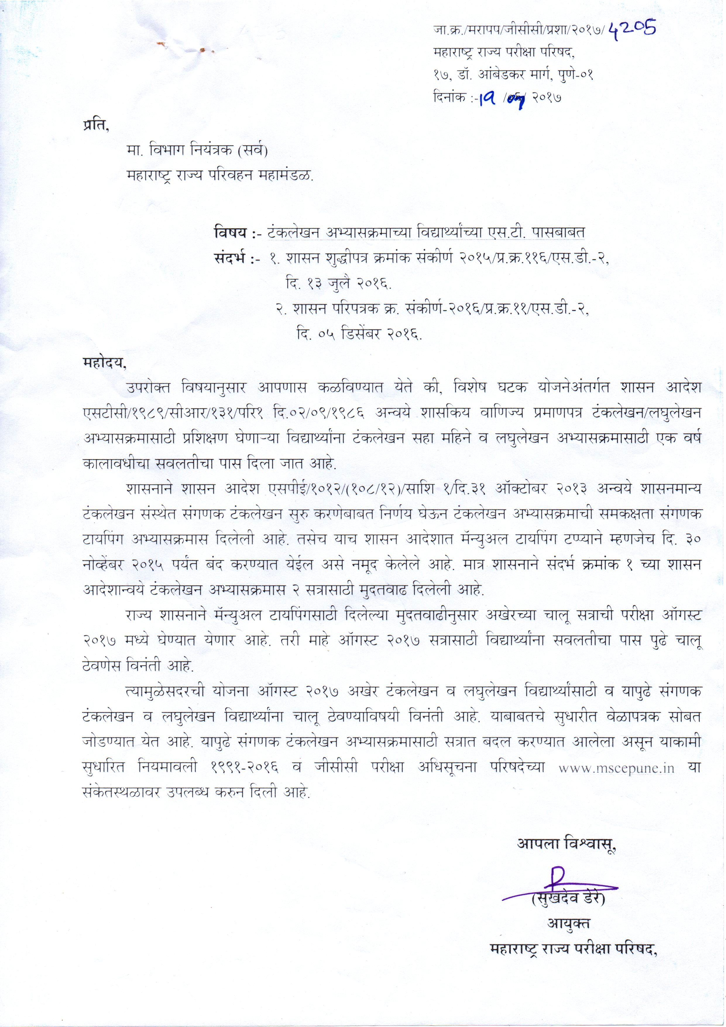 महाराष्ट्र राज्य परीक्षा परिषदेने सर्व खात्यास राजपत्र पाठवून संगणक टंकलेखन कोर्स नोकरभरती साठी लागू